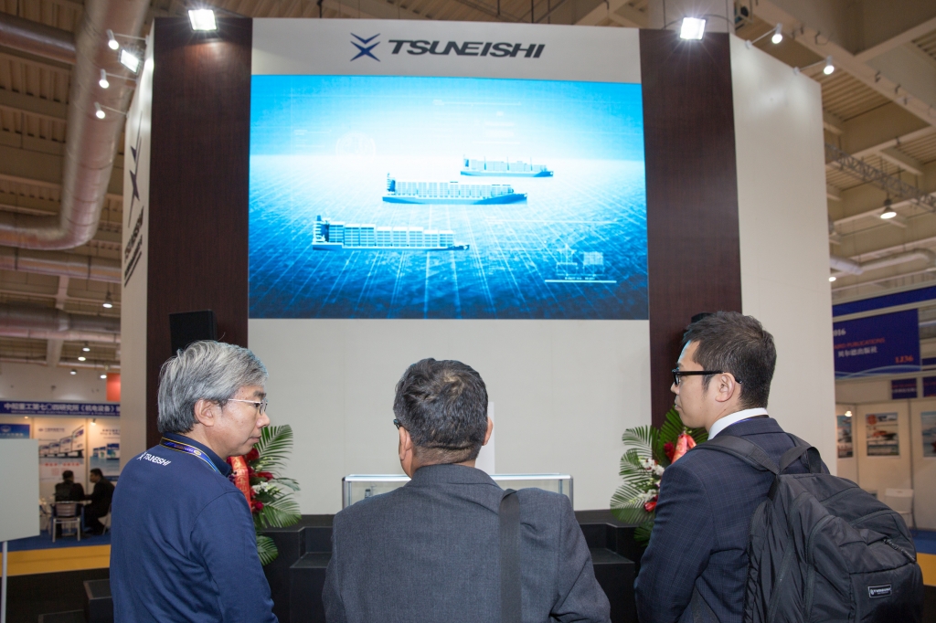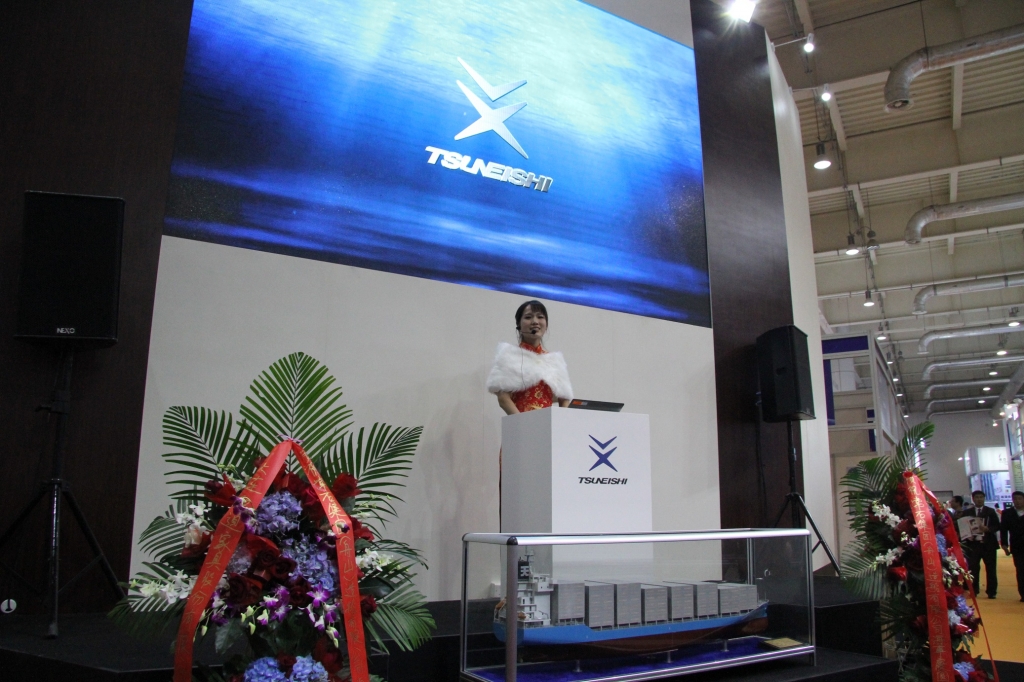 TSUNEISHI GROUP (ZHOUSHAN) SHIPBUILDING, Inc. based in Zhoushan City, China exhibited for the first time at the international maritime fair SHIPTEC CHINA 2016 held October 25 through 28, 2016 at Dalian World Expo Center. With the slogan of “Challenge & Progress, TSUNEISHI,” the company promoted its mindset of embracing challenges to those in the maritime industry around the globe.
