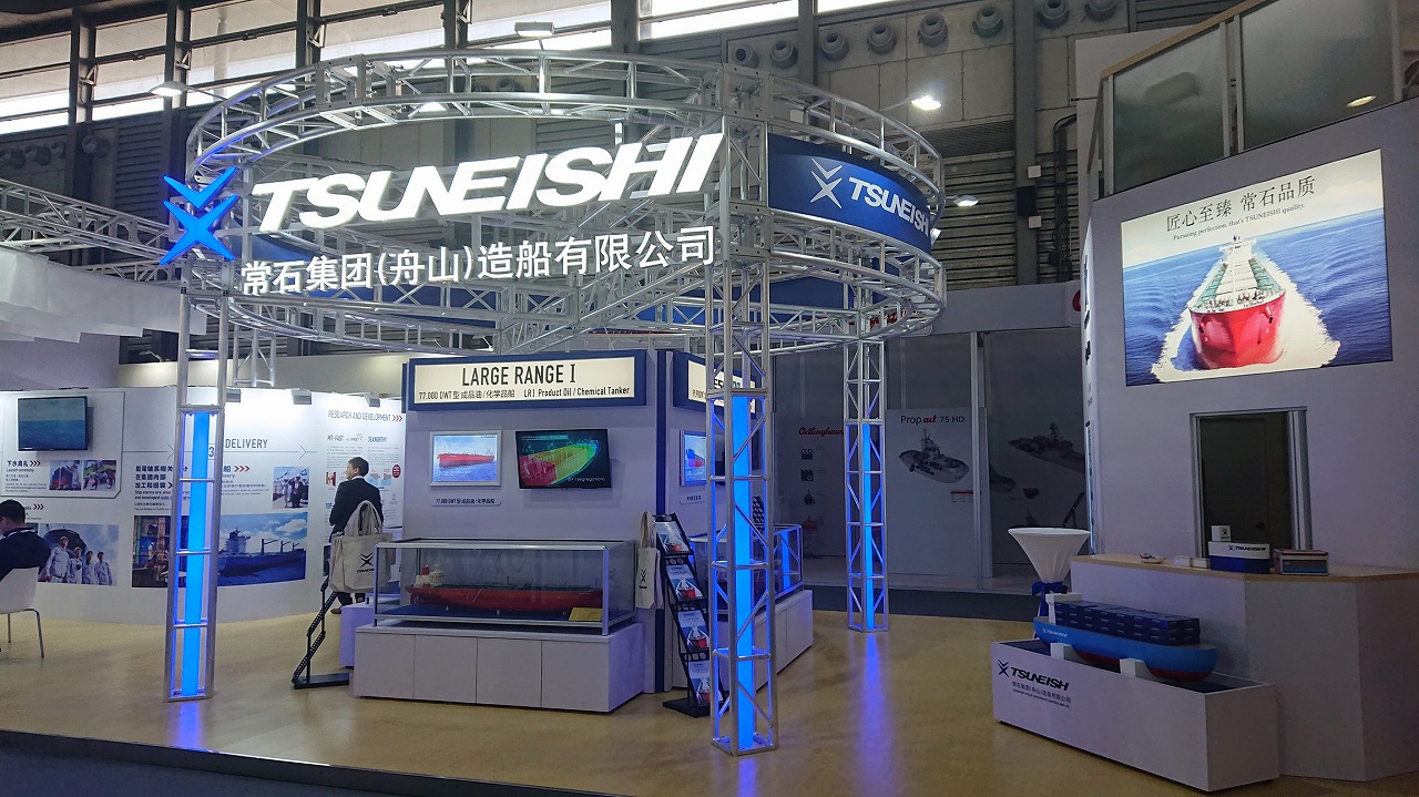 TSUNEISHI GROUP (ZHOUSHAN) SHIPBUILDING, Inc. (Location: Xiushan Island, Daishan County, Zhoushan City, Zhejiang Province, China; President: Jiro Sato; hereafter: TZS) exhibited at the MARINTEC CHINA 2019 international maritime exhibition which was held at Shanghai’s Shanghai New International Expo Center for 4 days from December 3, 2019 (Tue.) to December 6, 2019 (Fri.). We exhibited at a booth for our third time following the 2015 and 2017 exhibitions, and promoted our company’s past achievements and stable growth as well as our company strengths that have allowed us to rapidly improve our shipbuilding capacity.
