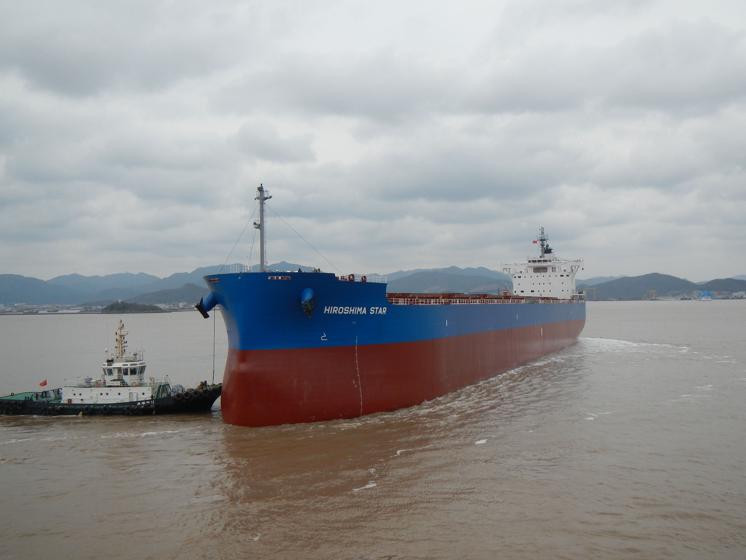 常石集團(tuán)(舟山)造船有限公司(浙江省舟山市岱山縣秀山島)于2017年2月24日(星期五)舉行了8萬噸級(jí)散裝貨船的交付儀式。該船是常石自主研發(fā)的卡姆薩型散裝貨船(D/W81,600mt型散裝貨船),是與TESS系列船型并駕齊驅(qū)的主要產(chǎn)品之一。由于此船為可航行于世界上鋁土礦中轉(zhuǎn)的主要港口——西非幾內(nèi)亞共和國卡姆薩港的最大船型,故將其命名為“卡姆薩型”。