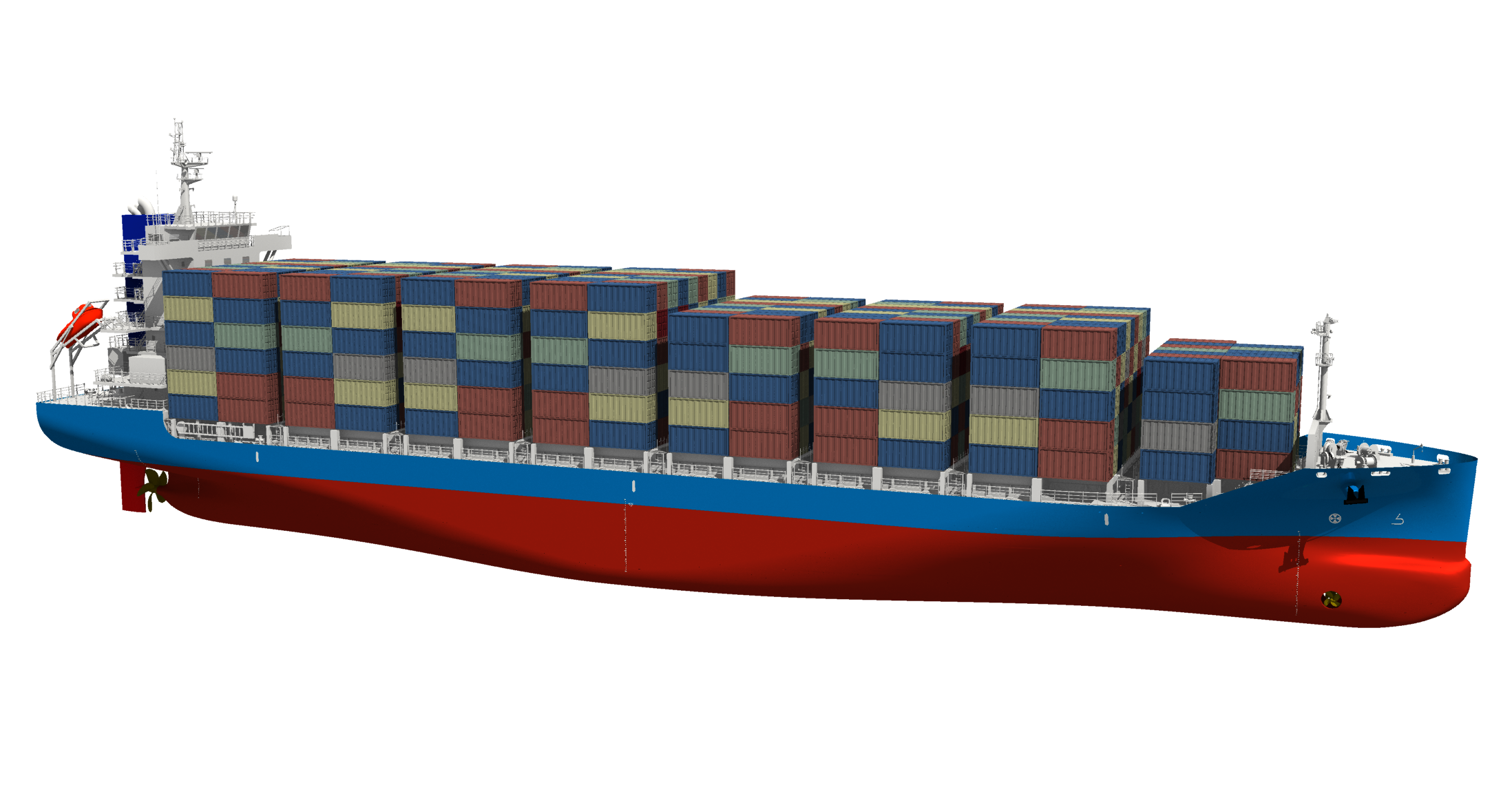 常石造船的1,091 TEU型集裝箱船是為中日之間的支線運輸而優(yōu)化的新船型。通過采用獨有的節(jié)能減排技術(例如、低阻力船體形狀、節(jié)能設備MT-FAST等),與原1,020TEU型相比,燃油效率得到了極大的提高。環(huán)保性能也得到了加強,在滿足溫室氣體排放國際規(guī)則第三階段EEDI指標,安裝有壓載水處理系統(tǒng)的同時,為應對突發(fā)的海上事故而對燃油艙采用雙殼化處理,以防止漏油造成海洋污染等。此外,在保持船舶總噸小于1萬的前提下,通過對貨艙和舾裝件的優(yōu)化布置,最大裝載量與1,020TEU型相比增加了71TEU(20FT當量),達到同型船最大的1,091TEU。